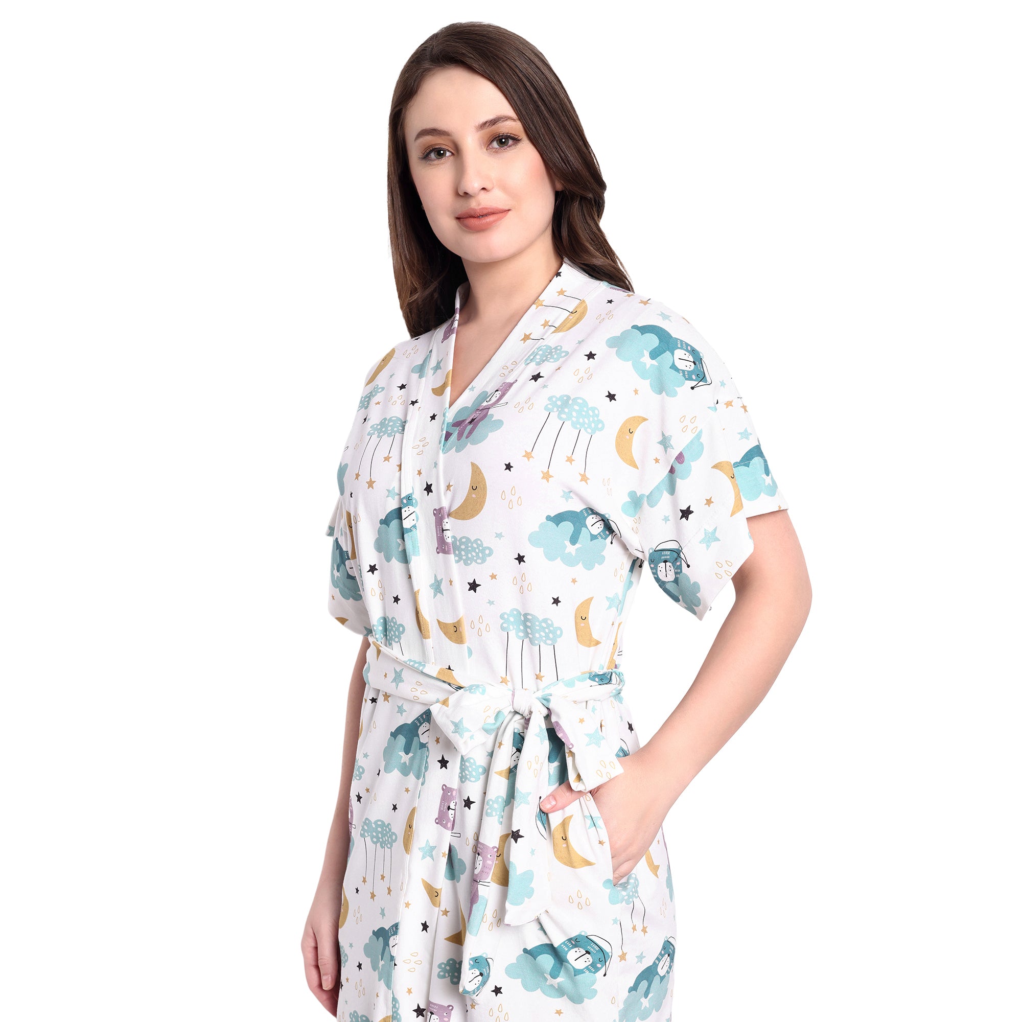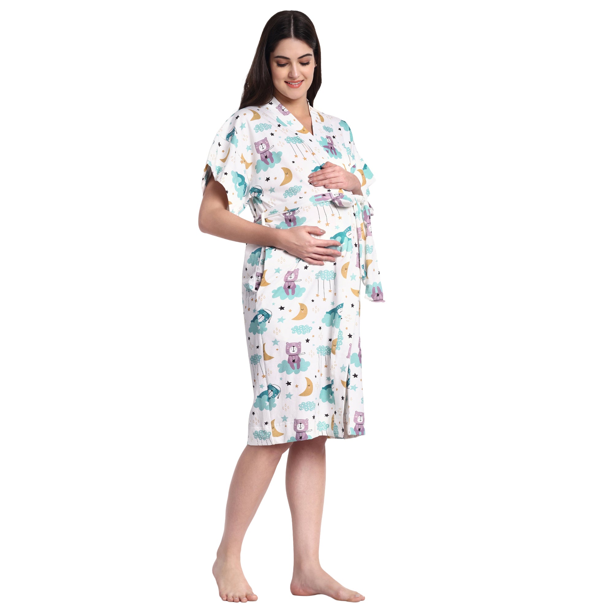 - Maternity robe is offered in 3 sizes: S-M, L-XL and 2XL-3XL.