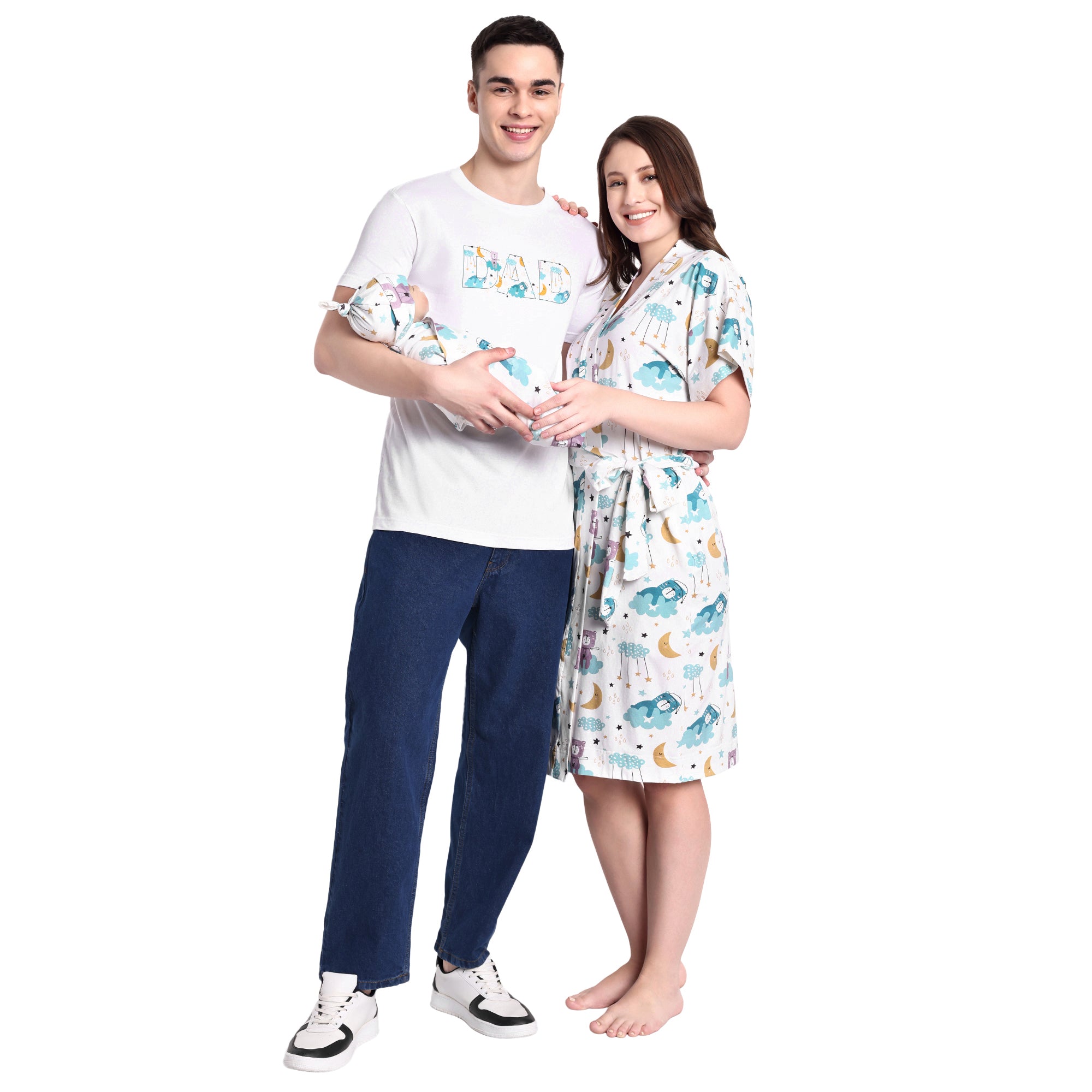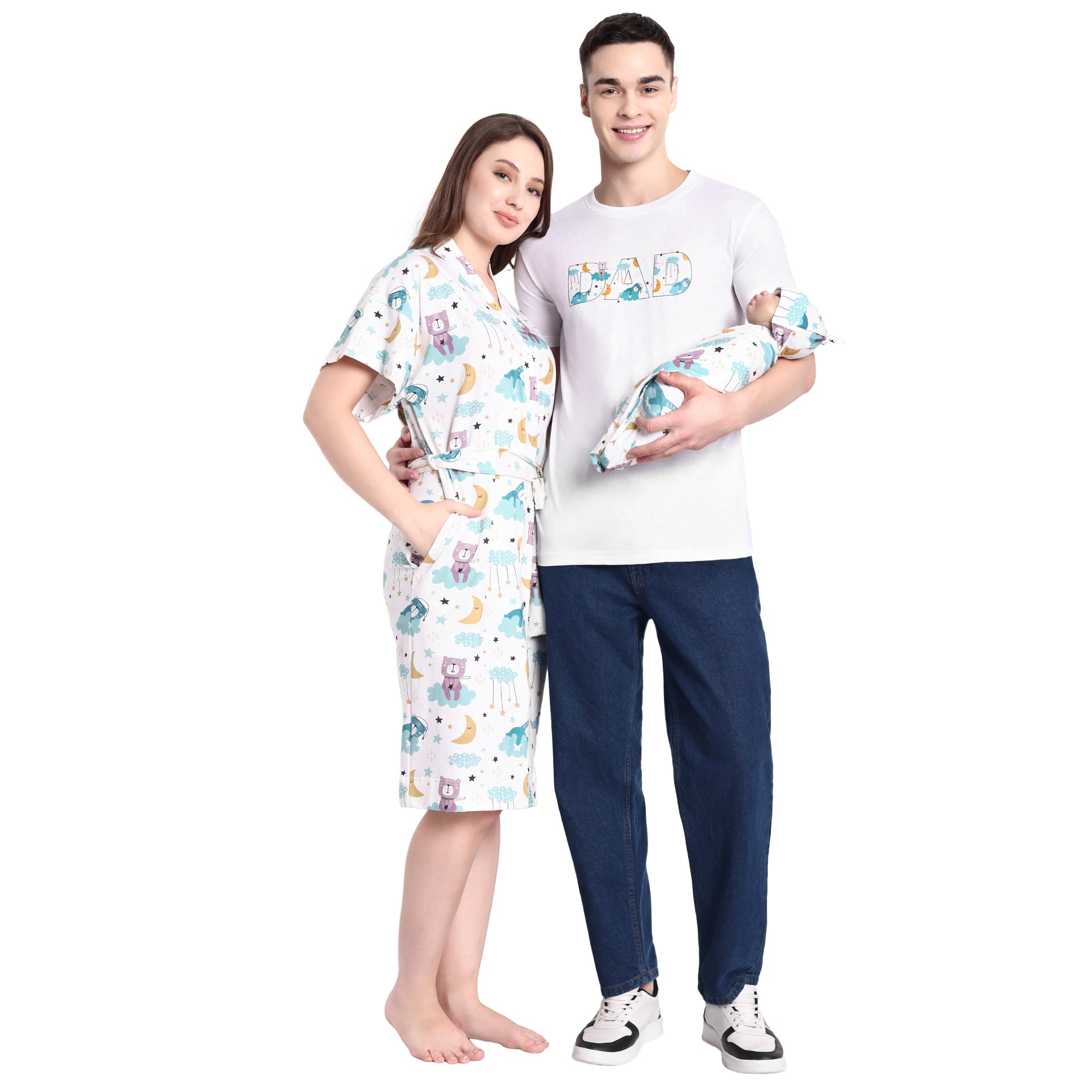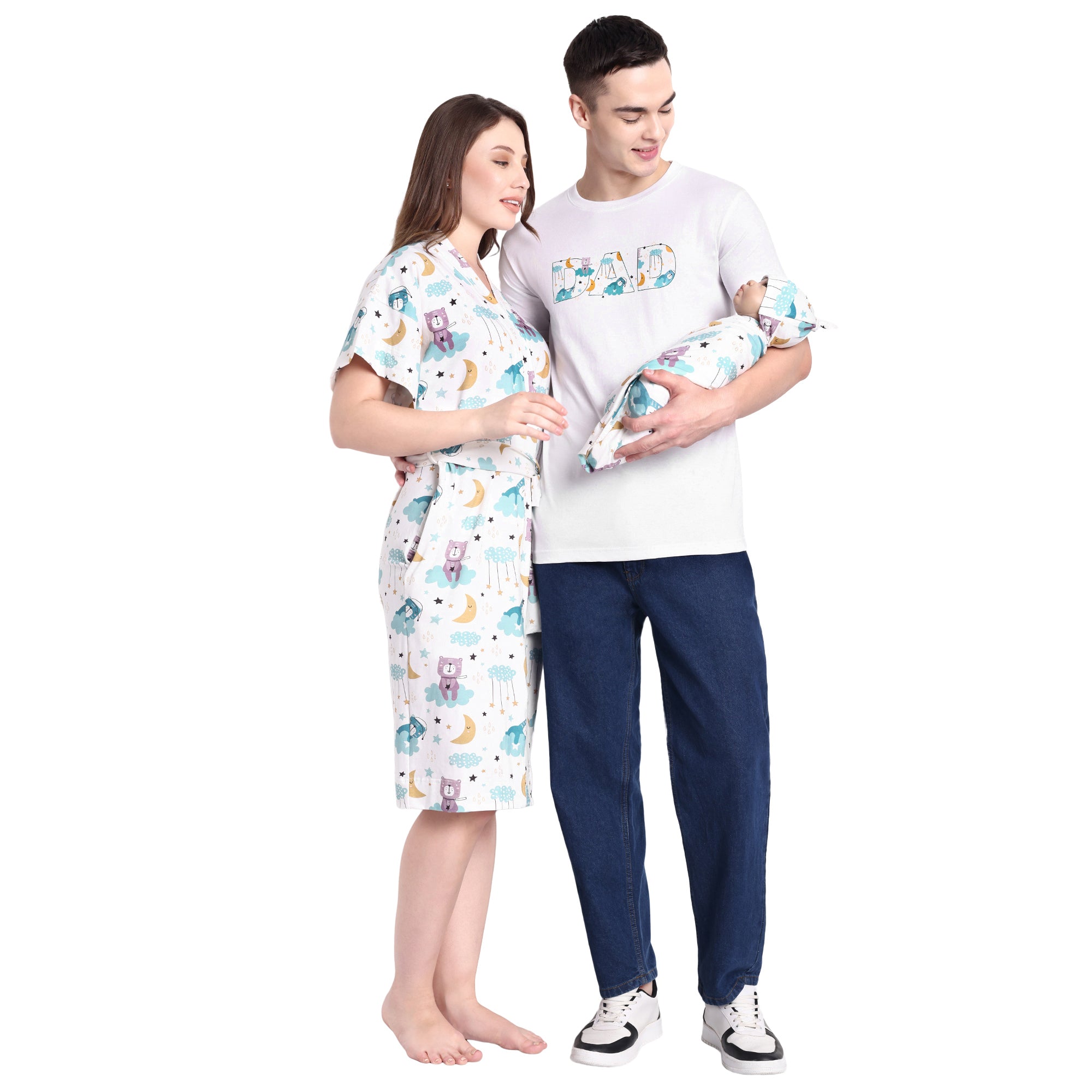 1 Maternity robe + Swaddle + Personalized baby hat.