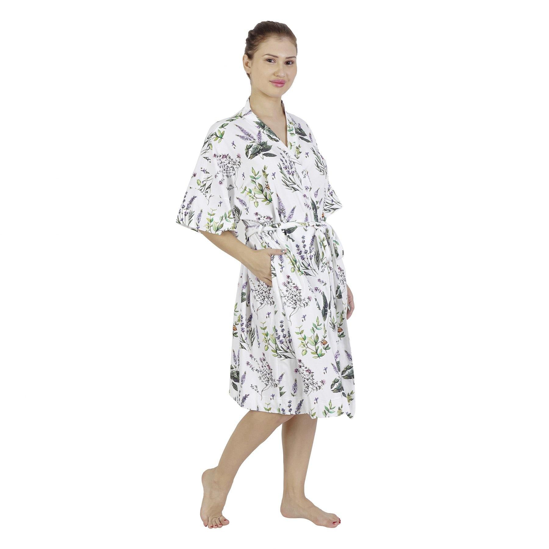 Comfy Mommy Botanical Organic Stretch Cotton Maternity Robe | Maternity Gowns