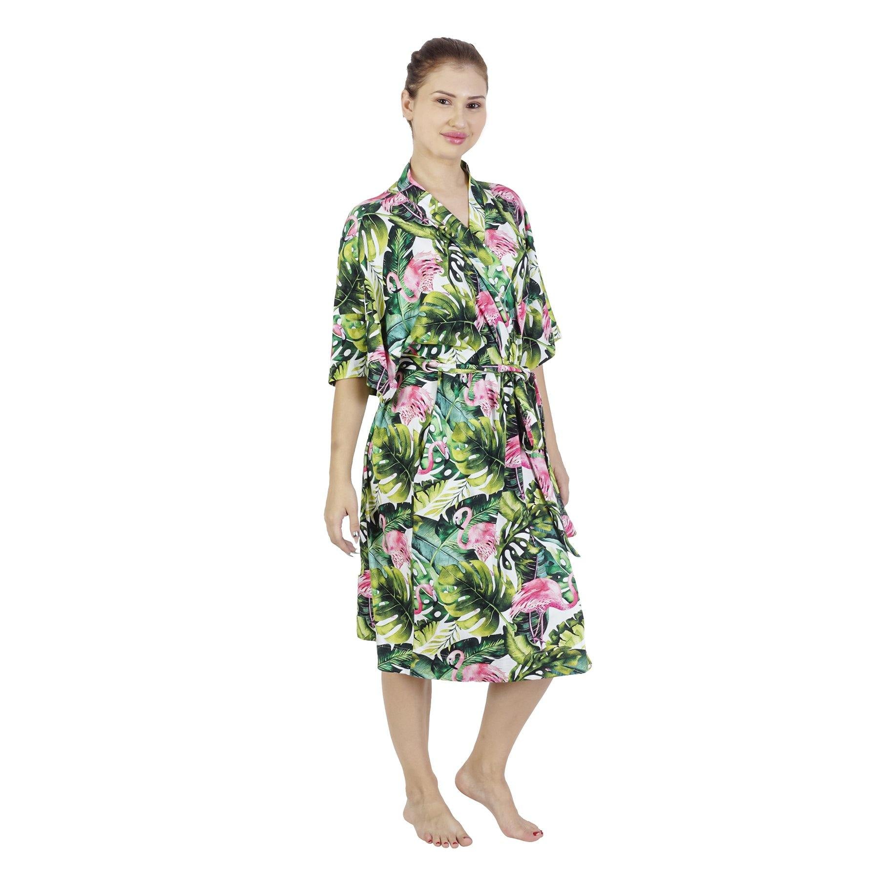 Comfy Mommy Flamingo Palm Organic Stretch Cotton Maternity Robe | Maternity Gowns