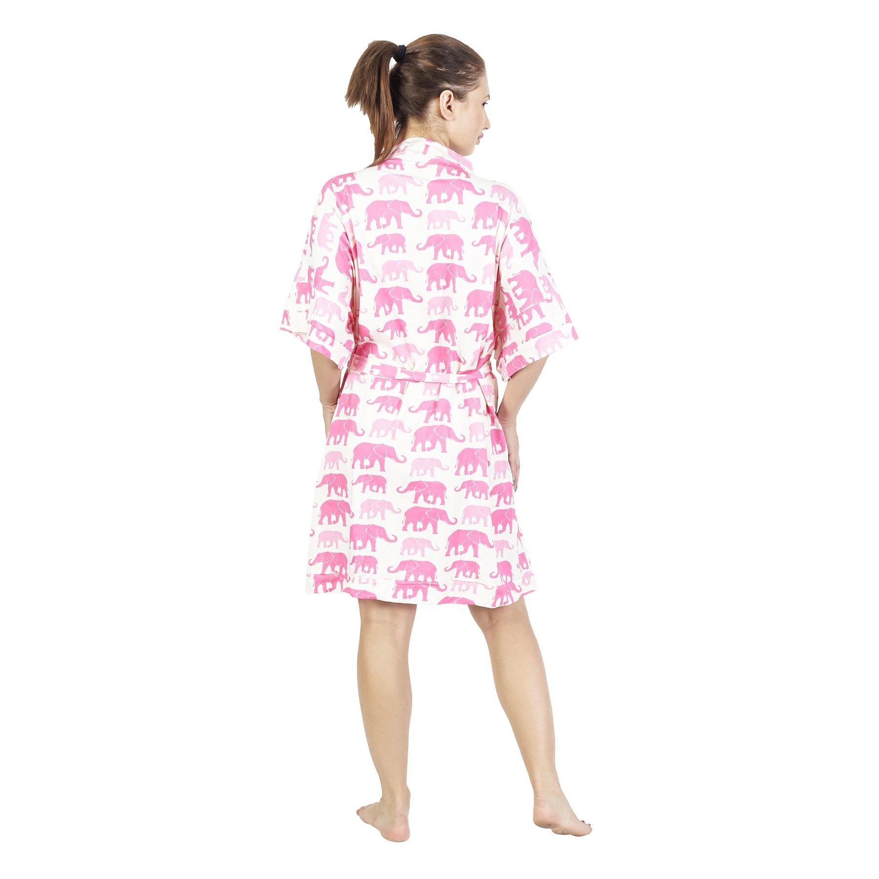 Comfy Mommy Pink Elephant Organic Stretch Cotton Maternity Robe | Maternity Gowns