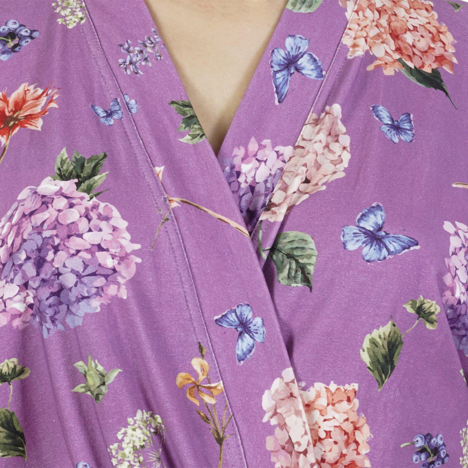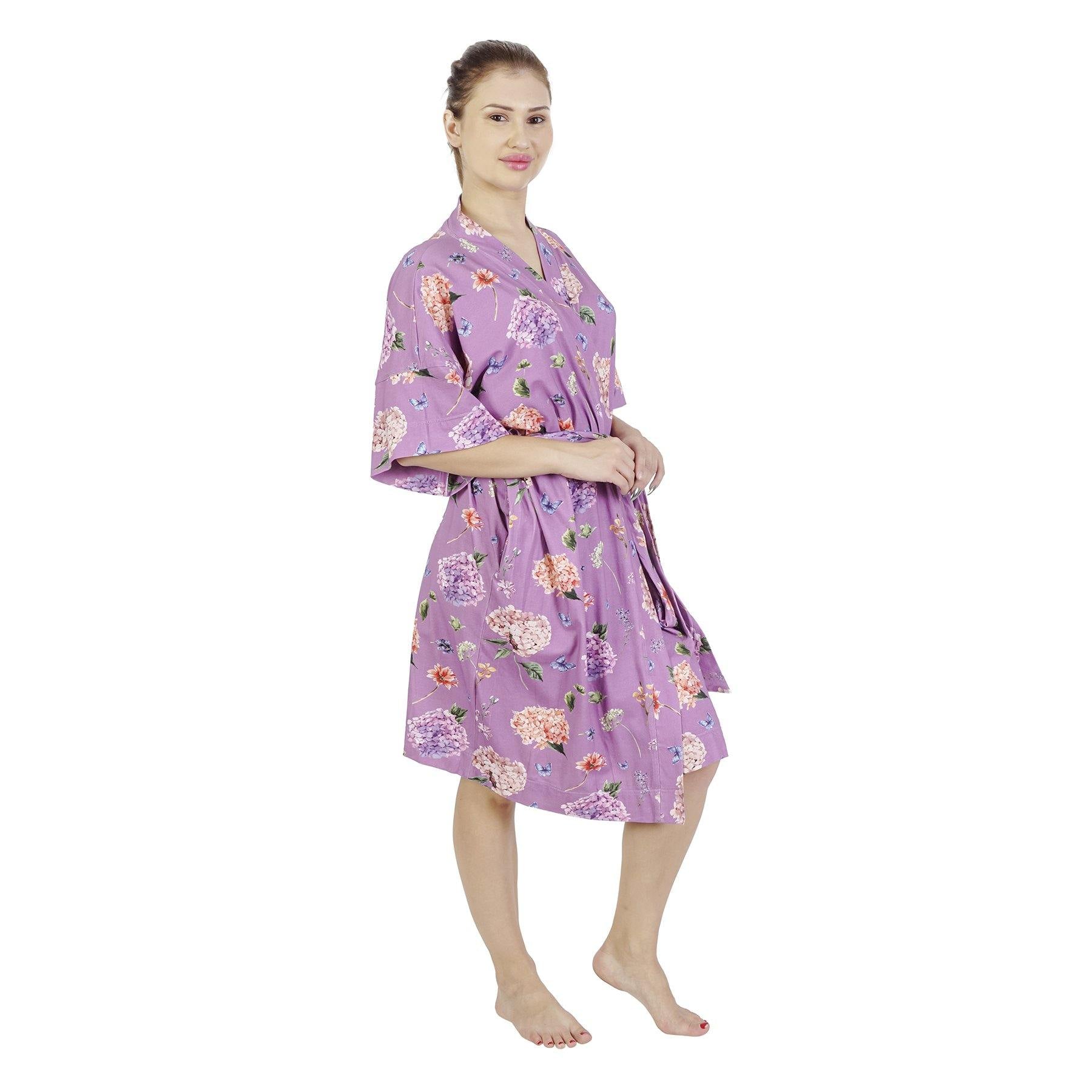 Comfy Mommy Purple Peonies Organic Stretch Cotton Maternity Robe | Maternity Gowns