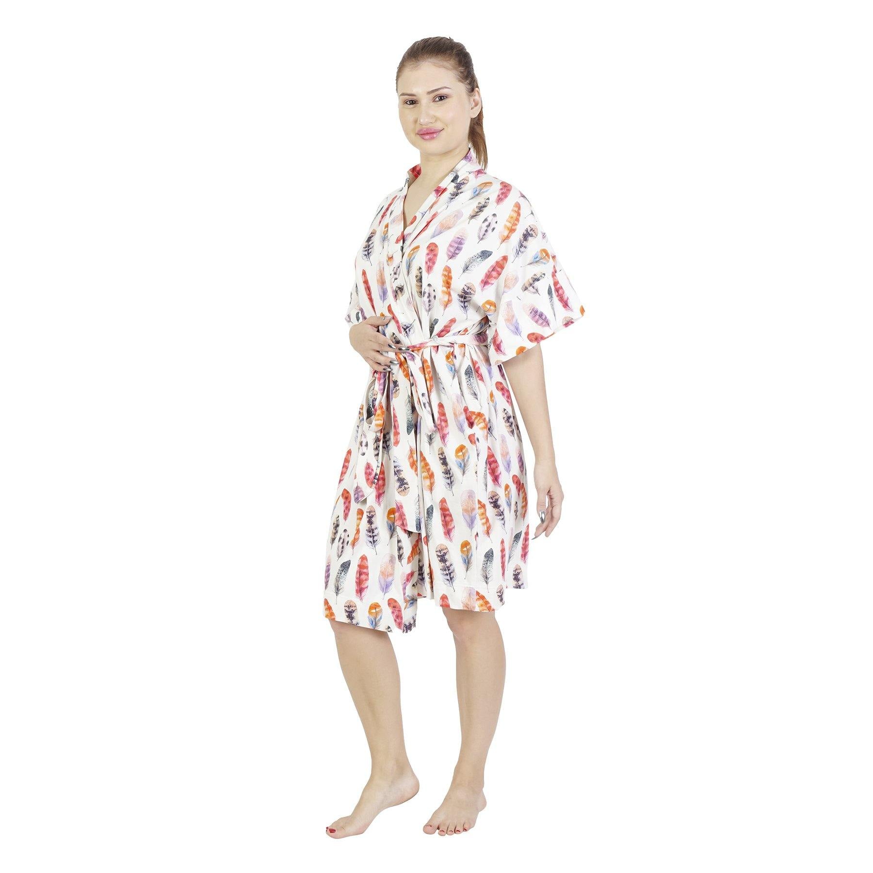 Finding a couple of MATERNITY ROBE is important to seeing out your PREGNANCY in Vogue. Rather than choosing only one dress type and sticking thereto, select a few that will keep you covered for both casual and more formal occasions. For casual outings, a t-shirt dress, like Kristin Cavallari's, is going to be cute and cozy. If you are trying to find something which will transition from day to night time, a classy black MAXI DRESS like Ciara's will work well. Just pair it with heels or wedges during the evening and swap it with sneakers during the day. This soft MATERNITY ROBE works for labor and lounging alike, and the patterns coordinate with the designs of the brands. The inclusive sizing also means you can score a PLUS SIZE MATERNITY ROBE you will love. The cozy fabric makes it perfect for sleeping wear or lounging around the house, and a good choice at a HOSPITAL. It is 100% lightweight, breathable, and super soft ORGANIC COTTON MATERNITY ROBE.