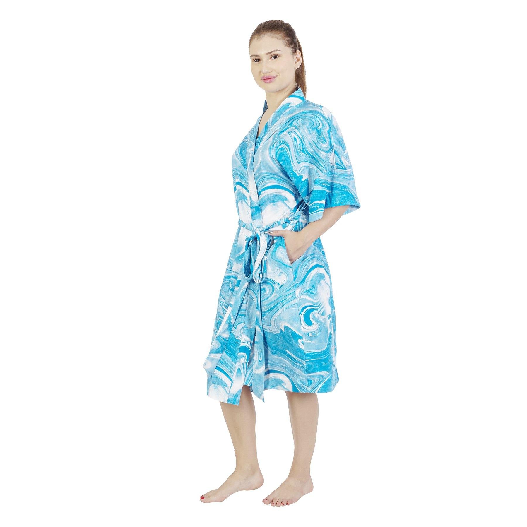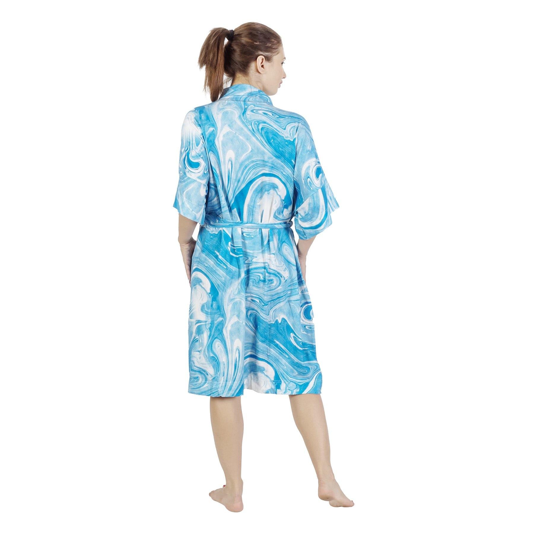 Comfy Mommy Blue Marble Organic Stretch Cotton Maternity Robe | Maternity Gowns
