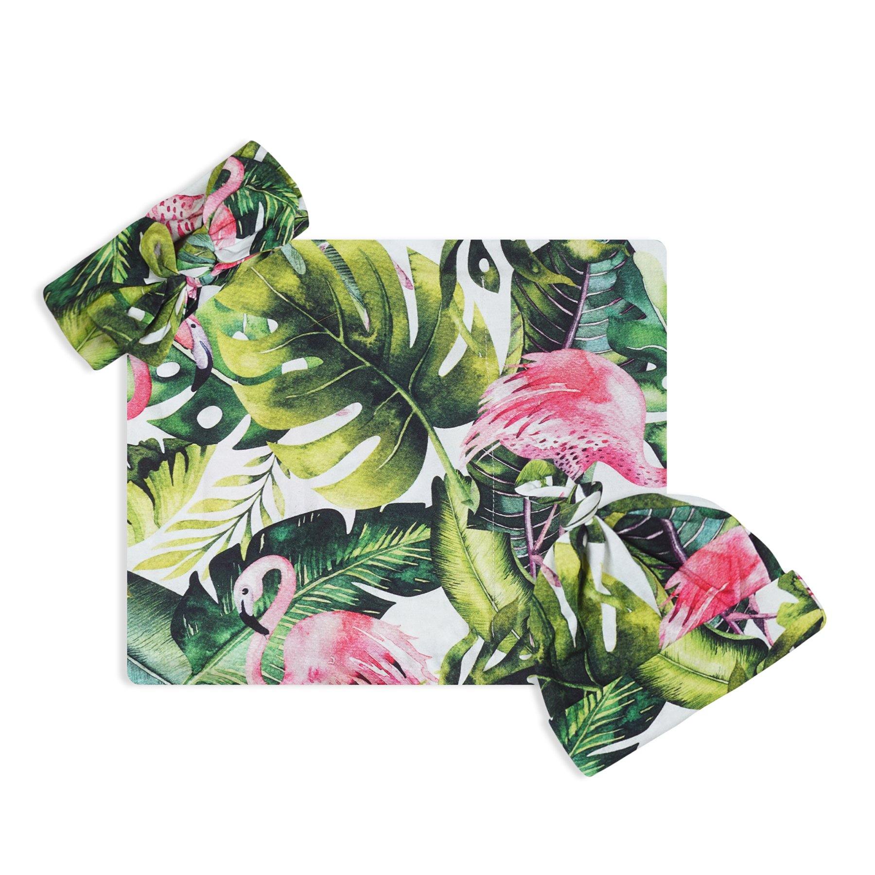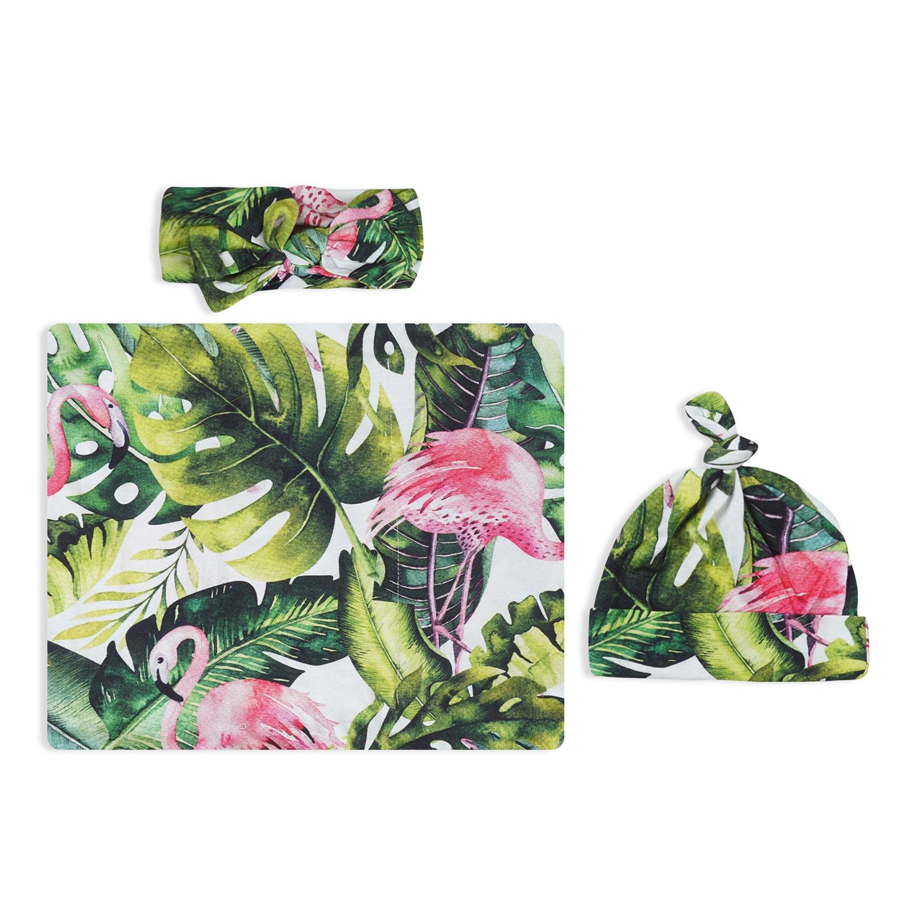Flamingo Palms Swaddle Set For Newborn Baby Boy And Girl | Swaddle Set For New Born Baby
