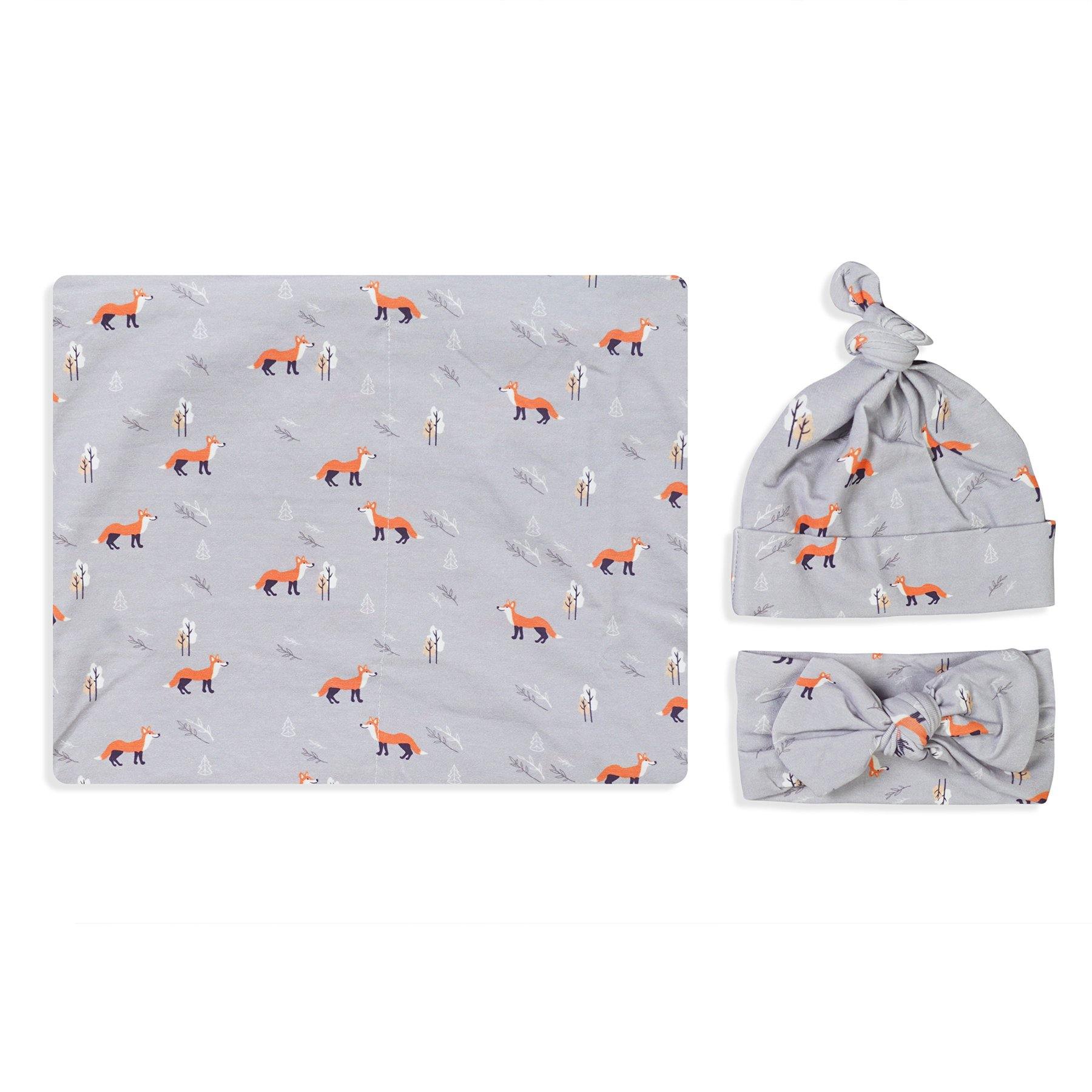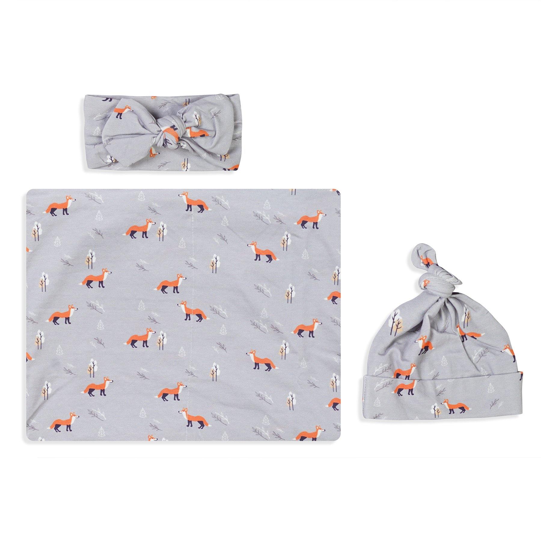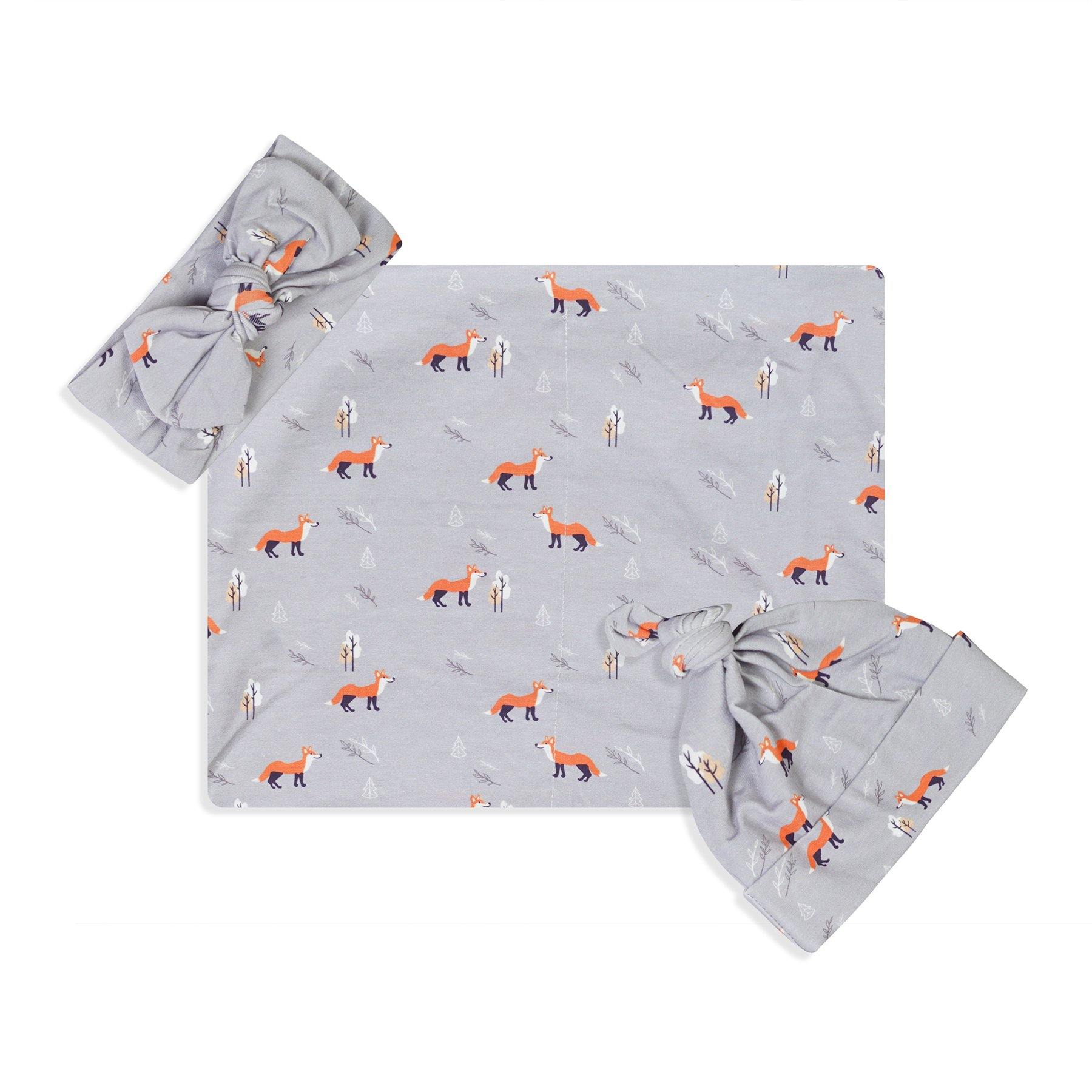 Gray Fox Swaddle Set For Newborn Baby Boy And Girl | Swaddle Set For New Born Baby