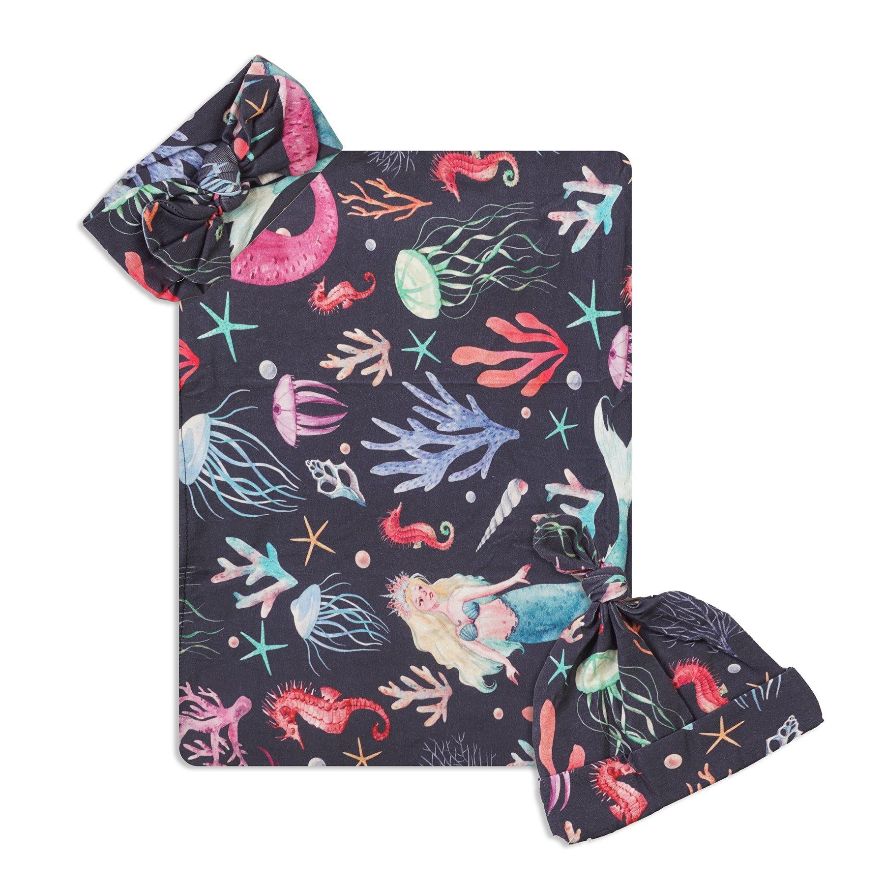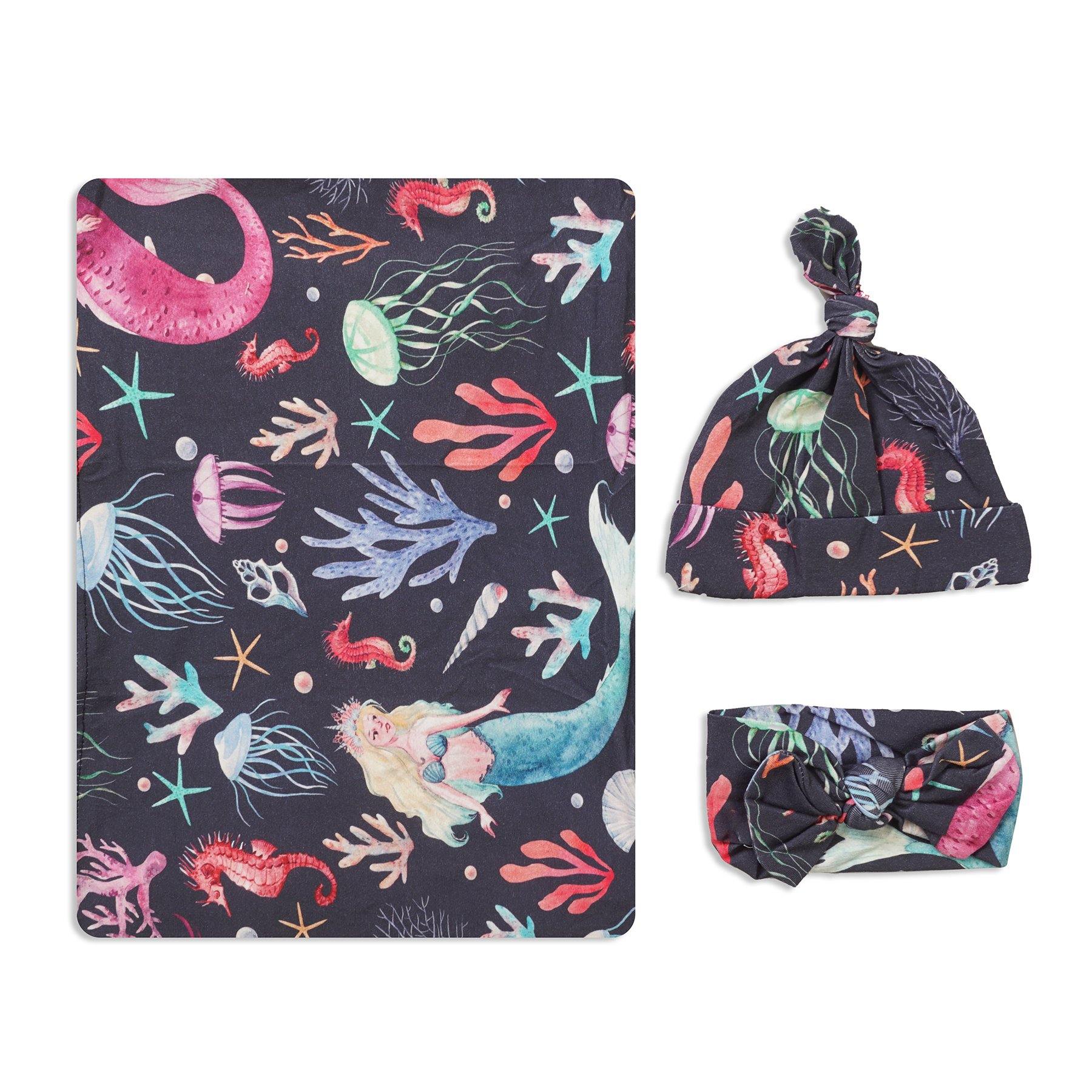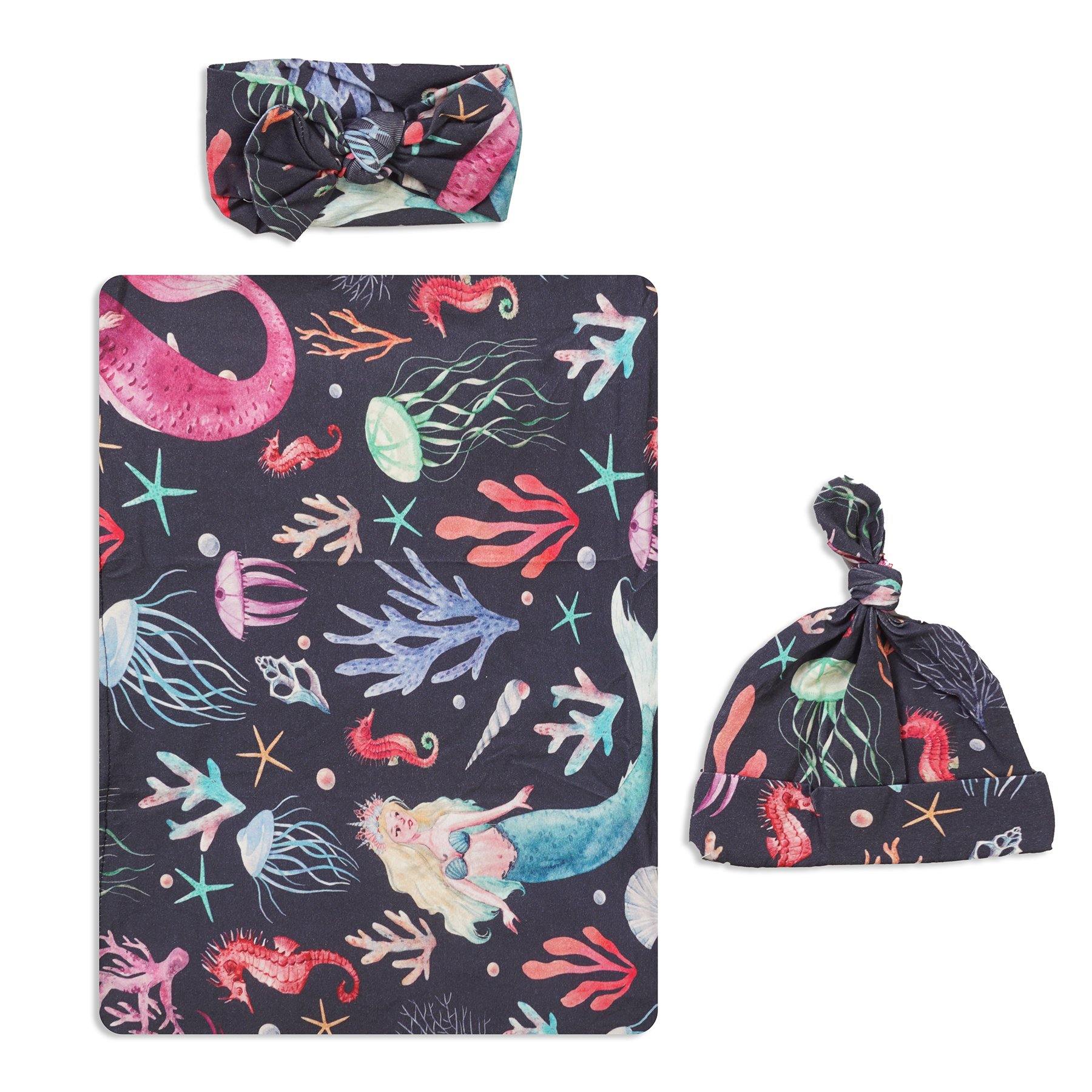 Gray Mermaid Swaddle Set For Newborn Baby Boy And Girl | Swaddle Set For New Born Baby