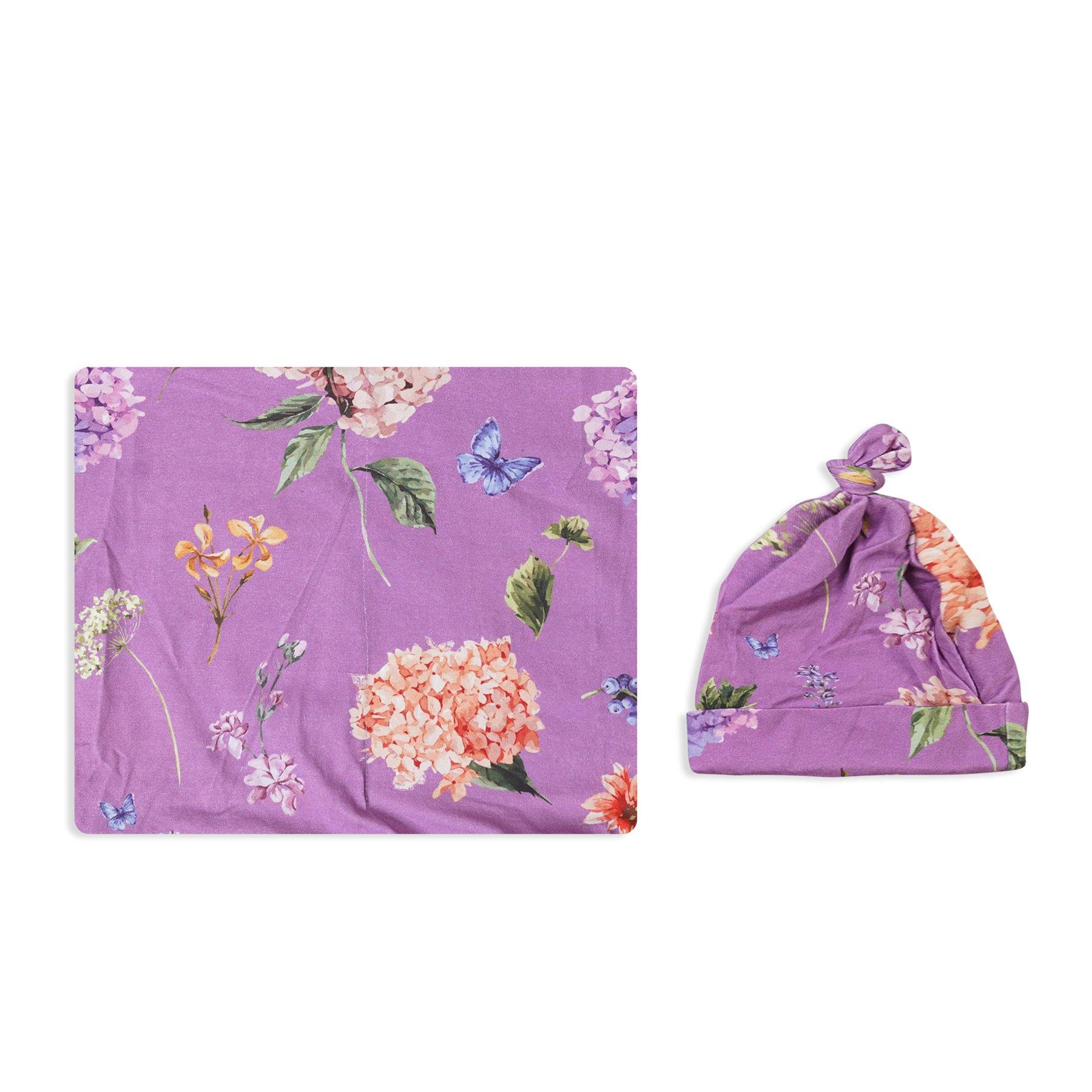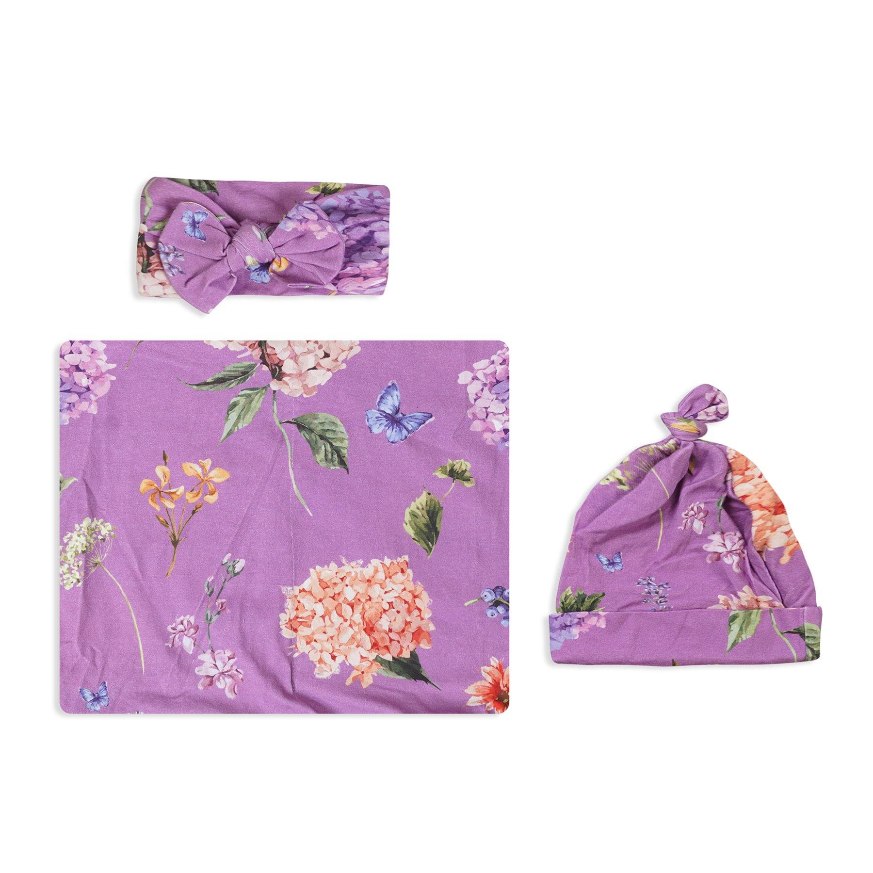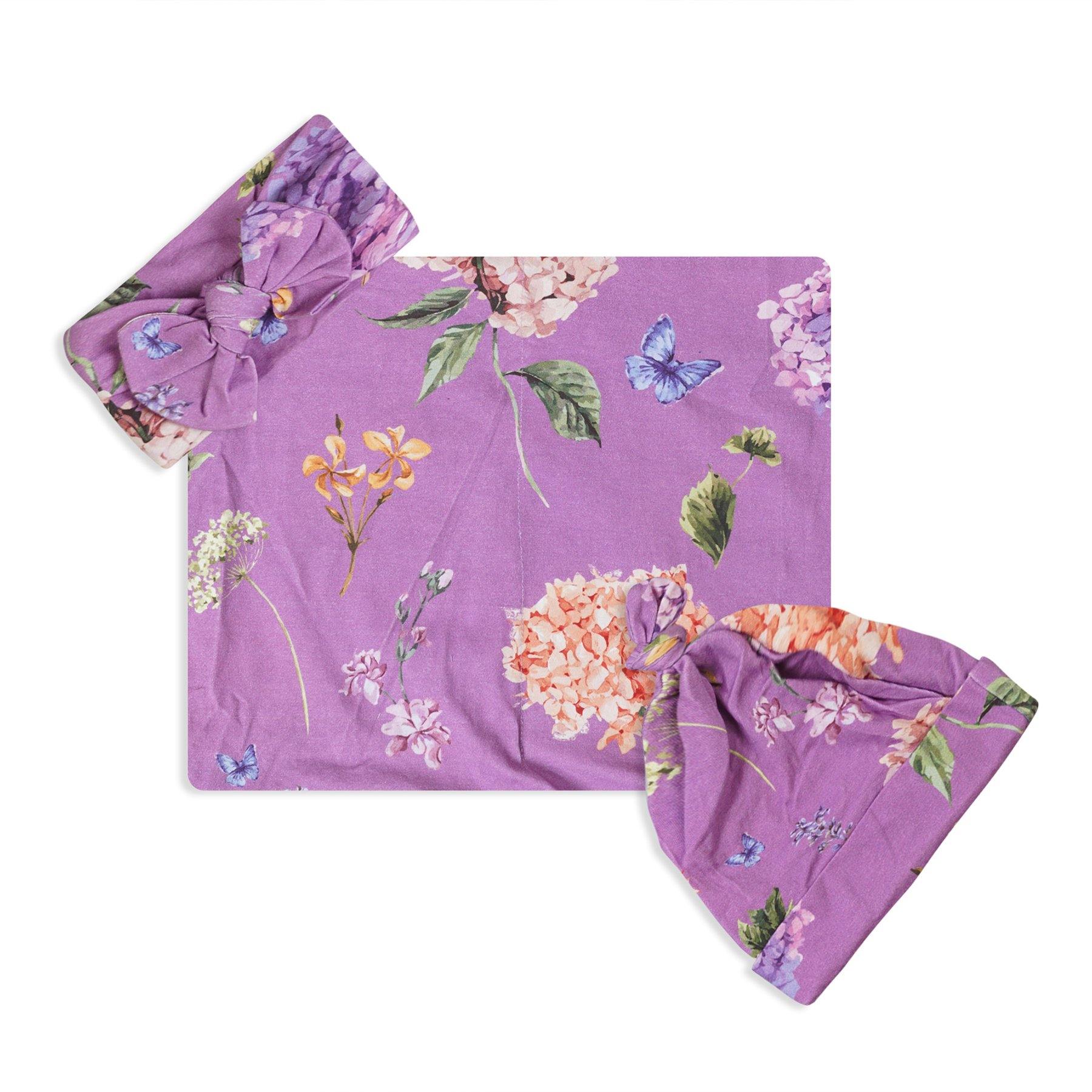 Purple Peony Swaddle Set For Newborn Baby Boy And Girl | Swaddle Set For New Born Baby